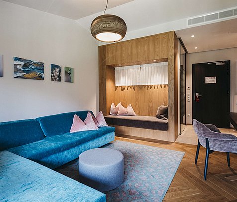 - separate living area with cosy sofa, desk and chair