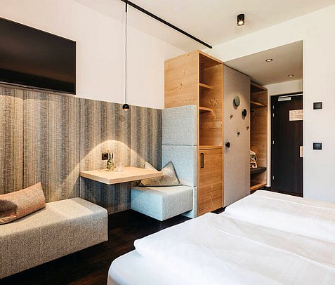 Moderna, accogliente, elegante. Qui vi sentirete come a casa vostra, con la differenza che avrete delle montagne meravigliose proprio davanti alla porta di casa, che aspettano di diventare il vostro parco giochi e campo sportivo personale.