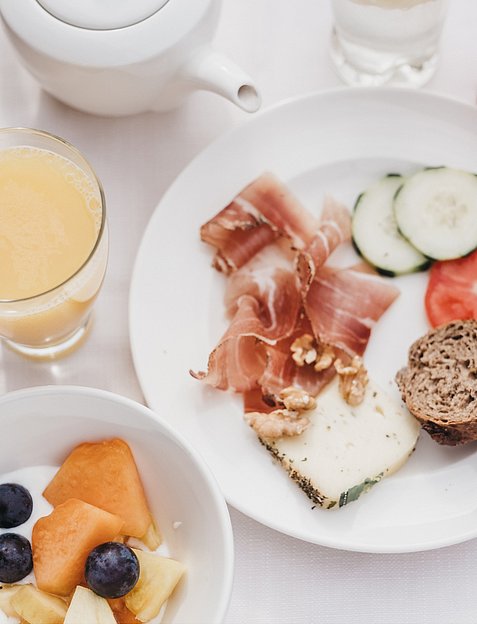 Chi non ha già fatto una piccola colazione a bordo piscina la mattina presto si incontra dalle 07.00 al ricco buffet della prima colazione. Resterete incantati dalla fragranza dei panini freschi, dall’aroma del caffè e delle prelibatezze dolci e salate dell’Alto Adige.